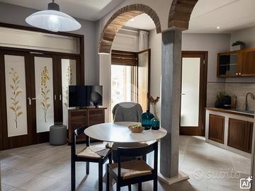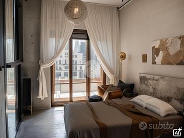 L'ingresso si apre su un luminoso open space, completo di balcone e bagno di servizio. Il soggiorno, ampio e accogliente, dispone anch'esso di un balcone, ideale per momenti di relax.