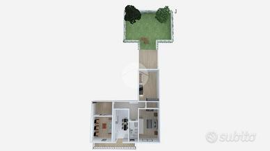 L'appartamento si apre su un ampio soggiorno luminoso, segue una cucina abitabile, bagno finestrato, ripostiglio e due comode camere da letto. Spazi ben distribuiti e grande potenziale per personalizzare secondo i propri gusti.