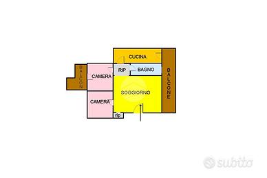 Entrando in casa siamo accolti dall' ampio salone separato dalla cucina abitabile uniti dalla stesso balcone. La zona notte è composta da camera da letto e cameretta anch'essa con balcone infine troviamo il servizio e il ripostiglio utile per depositare gli oggetti ingombranti.