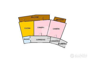 La proprietà è composta da cucina, cameretta unite dalla stesso balcone camere da letto anch'essa con balcone è infine il servizio finestrato.