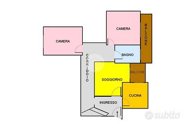 Al suo interno è composto di: ingresso in disimpegno, soggiorno con accesso ad un'ampia balconata, cucina, corridoio, ripostiglio, due camere da letto e bagno.