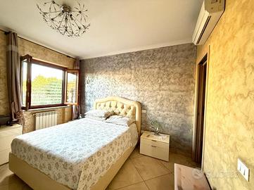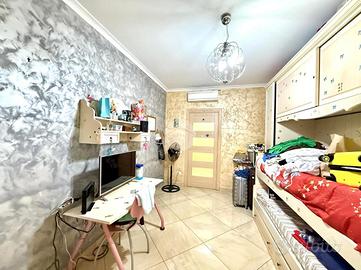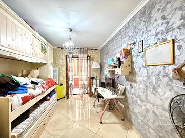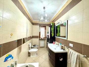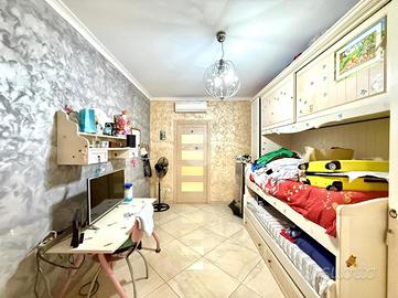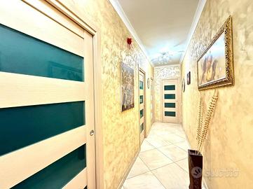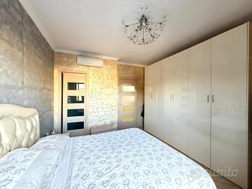 Un corridoio largo e funzionale separa la zona giorno dalla zona notte, garantendo privacy e comfort. Qui troviamo una cameretta di generose dimensioni, anch'essa servita da balcone, perfetta per bambini, ospiti o da adibire a studio. Il bagno principale, rifinito con gusto, si presenta spazioso e ben organizzato. La camera da letto matrimoniale è dotata di bagno privato, offrendo così un ambiente intimo e riservato. Completa la proprietà un comodo ripostiglio, estremamente utile per mantenere ordine e sfruttare al meglio ogni spazio.