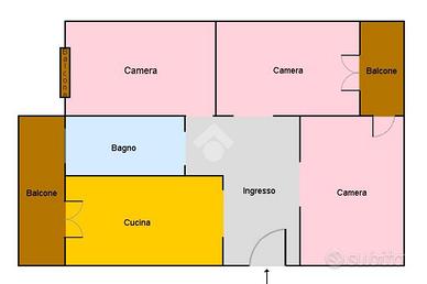 L'appartamento si trova a un piano alto, elemento che assicura un affaccio libero, piacevole e riservato. L'ingresso si apre su un comodo disimpegno che conduce agli ambienti principali: una cucina abitabile, un soggiorno spazioso e due camere da letto ben proporzionate. L'immobile dispone di due ampie balconate che servono le principali stanze, ideali per essere vissute anche come spazi esterni durante la bella stagione, oltre a un balconcino alla romana, pratico e funzionale.