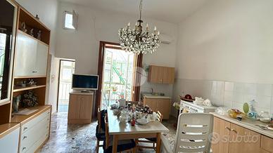 Al primo piano si accede da un comodo ingresso che si apre su un ampio disimpegno centrale. Sulla sinistra troviamo una spaziosa cucina abitabile, servita da un bagno e con affaccio su un balcone verandato, attualmente adibito a ripostiglio, che offre ulteriore spazio per organizzare l'ambiente domestico in maniera pratica e funzionale. Sul lato destro dell'ingresso troviamo invece una grande camera da letto matrimoniale, anch'essa luminosa e ben arieggiata, dalla quale si accede direttamente a una seconda camera, ideale come ulteriore camera da letto, studio o zona relax. Entrambe le camere affacciano su un balcone con esposizione su strada.