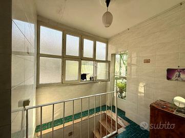 Dal balcone verandato della cucina, tramite una scala interna, si accede al piano terra, dove si sviluppa un ulteriore ambiente indipendente. Questo livello ospita un'ulteriore camera, dotata di bagno di servizio, e una piccola stanza aggiuntiva, perfetta da adibire a lavanderia, stireria, dispensa o piccolo studio. Anche il piano terra gode di ingresso autonomo, rendendolo ideale per creare un mini-appartamento separato, una dependance o uno spazio da dedicare a uso professionale.