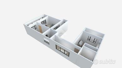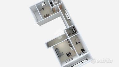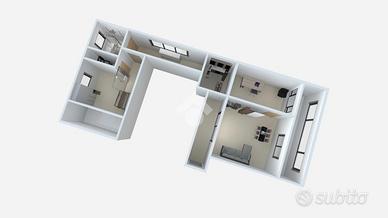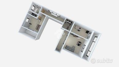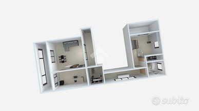 L'immobile si sviluppa su una quadratura interna di 100 mq ed è composto da ingresso in soggiorno con ampia balconata terrazzata con esposizione panoramica, cameretta, cucina, camera da letto matrimoniale con bagno di servizio ed infine bagno patronale.