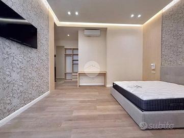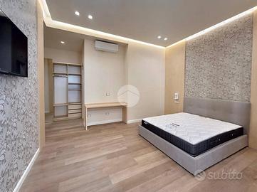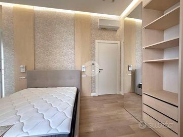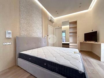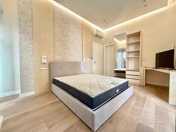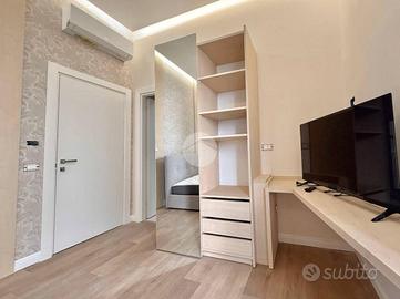 Gli spazi sono stati progettati per garantire massima funzionalità e comfort: pavimenti in parquet chiaro, pareti dai toni neutri e arredo moderno con letto contenitore, armadio capiente e scrivania. Il bagno privato, anch'esso di nuova realizzazione, è dotato di sanitari sospesi, ampia doccia e rivestimenti di design. Entrambe le camere sono dotate di balcone che garantisce un'ottima luminosità. Ideale per chi cerca un ambiente raffinato e pronto all'uso.