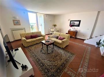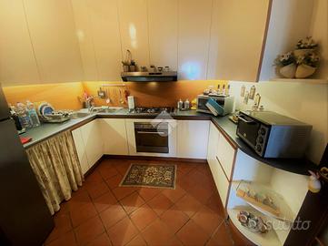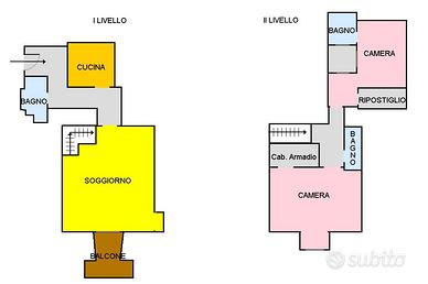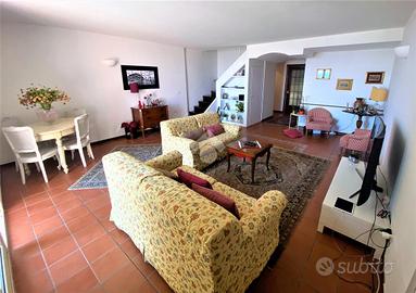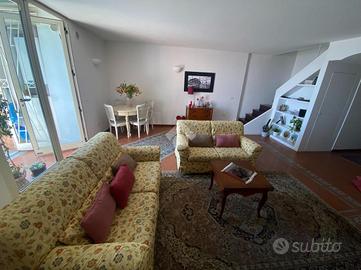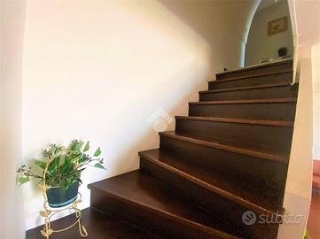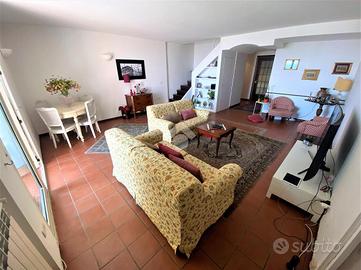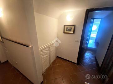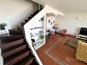 L'appartamento è composto internamente da ingresso in disimpegno, ampio soggiorno, cucina abitabile, un servizio oltre ripostiglio al primo livello; al secondo livello troviamo una camera da letto patronale con servizio e cabina armadio e cameretta con servizio oltre ripostiglio.