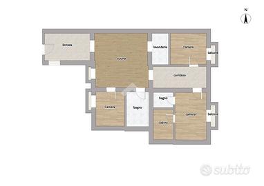 La disposizione interna degli spazi è particolarmente funzionale, l'immobile è infatti composto da ampio e accogliente ingresso, cucina abitabile, corridoio che disimpegna gli ambienti, 3 camere da letto, di cui una dotata di cabina armadio e bagno privato, comodo ripostiglio e secondo bagno completo.