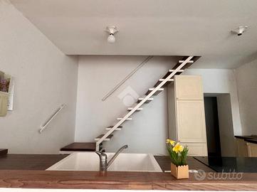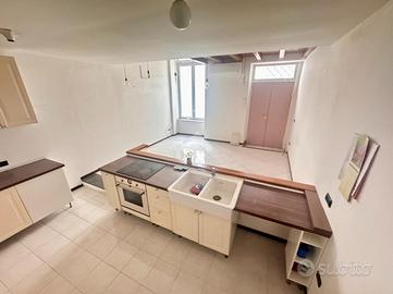 L'immobile è composto nel seguente modo:diviso su due piani, ingresso in ampia cucina-abitabile, bagno e camera matrimoniale e soggiorno.
