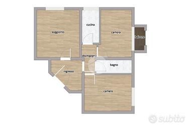 La disposizione interna comprende tre locali ben distribuiti, ideali per chi cerca spazi comodi e ben organizzati.