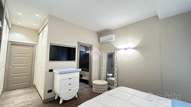 Proponiamo in vendita in viale Viscardi in un contesto riservato e tranquillo un elegante immobile ammobiliato, curato in ogni dettaglio e caratterizzato da ambienti raffinati e luminosi. L'appartamento è finemente progettato per garantire il massimo comfort per chi lo vive. Si compone di zona giorno living con salone e cucina completamente attrezzata e funzionale con accesso al terrazzo a livello. Nella zona notte troviamo, la camera da letto con cabina armadio su misura e bagno privato, la cameretta con finestra e bagno patronale. Arredi di qualità inclusi nella vendita. Inoltre predispone di un servizio living now da remoto per la parte elettrica, impianto radiatori e climatizzatori. Due posti auto coperti all'interno dell'area condominiale. L'immobile è visionabile previo avviso telefonico Studio Tecnocasa Ponticelli
