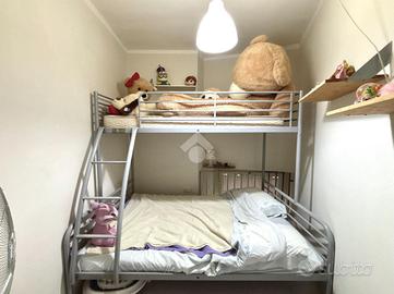 Il cespite è suddiviso su due livelli: al primo troviamo l'ingresso in cucina abitabile, bagno e disimpegno; al secondo livello troviamo la camera matrimoniale e una cameretta.