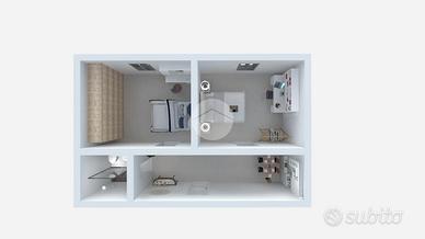 L'appartamento si sviluppa su una superficie di 60 mq ed è cosi composto: ingresso, angolo cottura, due camere da letto entrambe con finestra e bagno. Inoltre è dotato di impianto di condizionamento autonomo caldo/freddo.