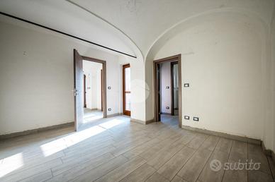 In centro paese proponiamo in affitto o riservato dominio/affitto a riscatto appartamento al primo piano di uno stabile composto da poche unità abitative. La palazzina è stata completamente ristrutturata ed è fornita di ascensore. L'ingresso avviene direttamente sul soggiorno con angolo cottura. Il disimpegno conduce alla prima camera matrimoniale, impreziosita dal bagno privato dotato di tutti i sanitari e box doccia più un antibagno utilizzabile come lavanderia. Conclude la zona notte il secondo servizio completo di tutti i sanitari e anch'esso dotato di box doccia, il ripostiglio e la seconda camera da letto, arieggiata dalle due finestre che affacciano sulla via principale. Il riscaldamento è semiautonomo a pavimento con pompe di calore. Le spese condominiali, incluse di riscaldamento, si aggirano tra i 1100€ e i 1300€ annui. L'immobile verrà consegnato completo di cucina fornita di tutti gli elettrodomestici e verrà imbiancato. Si richiedono clienti referenziati. Libero da subito. Ogni agenzia ha un proprio titolare ed è autonoma. - Le presenti informazioni non costituiscono elemento contrattuale.