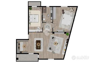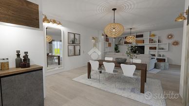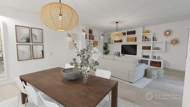 NERVIANO - VIA TICINO In piccolo contesto condominiale in fase di COMPLETA RISTRTTURAZIONE sia interna che esterna, composto da QUATTRO UNITA' ABITATIVE proponiamo AMPIO e LUMINOSO APPARTAMENTO. La zona è caratterizzata principalmente da piccole palazzine e case indipendenti, si trova lontano da strade di grossa percorrenza; ma resta comunque poco distante dalla SS33 del Sempione comoda per gli innesti a tangenziali ed autostrade. L'appartamento proposto si sviluppa al piano secondo, senza ascensore. L'ingresso conduce direttamente nella spaziosa zona giorno, divisa in zona living e zona pranzo; la cucina è a vista sul soggiorno ed i locali sono resi luminosi grazie alla finestra ed alle due porte-finestra dalle quali si accede al balcone loggiato. Il disimpegno porta alla zona notte, formata da una spaziosa camera matrimoniale e da un'ampia camera singola dotata di porta-finestra dalla quale si accede al secondo balcone. Il bagno finestrato è completo di sanitari, doccia ed attacchi della lavatrice. Completano la proprietà la cantina sita al piano interrato ed il box sito al piano terra. La ristrutturazione che interesserà l'intero appartamento prevede: * Serramenti esterni in PVC con doppio vetro e tapparelle elettriche; * Impianto di riscaldamento AUTONOMO con CALDAIA a CONDENSAZIONE posizionata all'esterno dell'appartamento; * Impianto elettrico * Pavimentazione in grès porcellanato effetto marmo * Porte interne lisce bianche * Impianto di climatizzazione freddo/caldo in tutte le stanze
