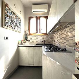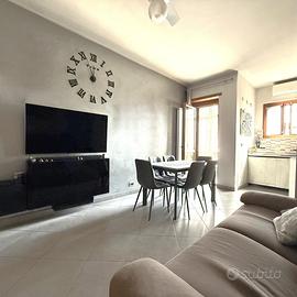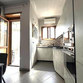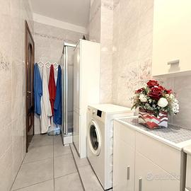 L'ingresso avviene tramite portoncino blindato e si apre su un ampio soggiorno, con adiacente cucinotto funzionale. La zona notte è composta da due camere da letto matrimoniali, bagno finestrato con doccia, pratico ripostiglio e due balconi, di cui uno verandato, perfetto da utilizzare come zona lavanderia o spazio relax.
