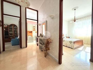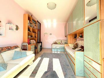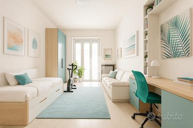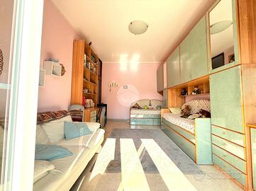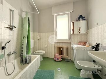 La zona notte comprende due camere da letto matrimoniali, entrambe molto generose nelle metrature, ideali per ospitare anche arredi completi senza sacrificare spazio. Il bagno è dotato di vasca e finestra, e la casa dispone anche di un ripostiglio, sempre utile per organizzare al meglio la vita quotidiana.