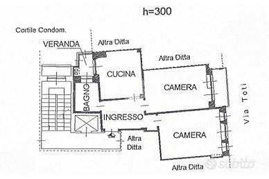 Il condominio è situato nella zona residenziale di Via Di Nanni, a ridosso della centralissima e servita Via Torino: L'appartamento è situato al piano quarto ed è dotato di ascensore. Il portoncino blindato apre sul disimpegno che conduce a tutti gli ambienti della soluzione. Nella zona giorno vi è la cucina abitabile con affaccio sul balcone privato e verandato. Nella zona notte vi sono due camere da letto, di cui una con balcone. Il bagno risulta finestrato e dotato di doccia. A completare la soluzione vi è la soffitta al piano sottotetto.
