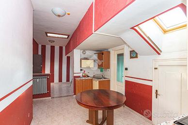 Al sesto ed ultimo piano, servito da ascensore fino al quinto piano, panoramico appartamento mansardato con balcone. L'ingresso è regolato dal portoncino blindato e si apre direttamente sul soggiorno, la cucina è abitabile e la camera da letto di generose dimensioni gode della bellissima vista sulle Alpi. Il bagno è dotato di finestra e doccia. Ottimo appartamento come primo acquisto o ad uso investimento con rendita annuale fino al 10%. Il riscaldamento è centralizzato con le termovalvole termostatiche e contabilizzatori, le spese condominiali sono pari a circa € 1.000,00 annuali comprensive anche delle quote riscaldamento.