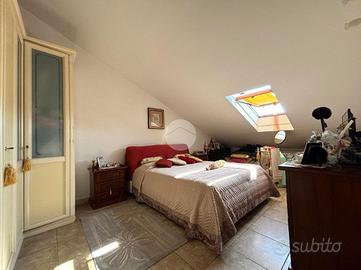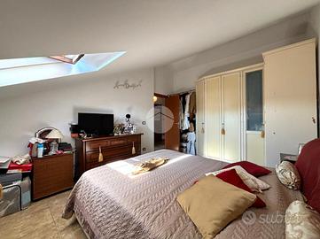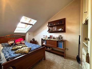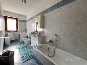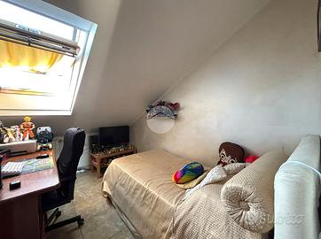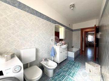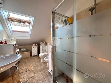 Il bagno principale è di generose dimensioni, con un ingresso sfruttabile anche come zona lavanderia. Una comoda scala interna conduce al locale sottotetto, attualmente suddiviso in tre ambienti funzionali, adibiti a tre camere da letto e una lavanderia.