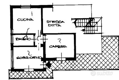 L'immobile si apre su una cucina abitabile con affaccio su balcone, dispone di due camere da letto, di cui una eventualmente utilizzabile come soggiorno, e un bagno finestrato dotato sia di vasca che di doccia.