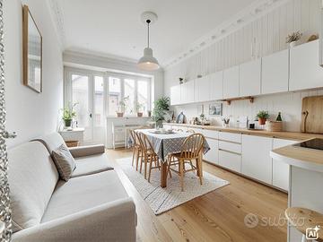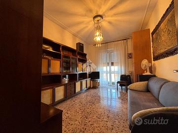L'appartamento, situato a un piano alto, gode di doppia esposizione che garantisce ambienti ariosi e luce naturale per tutta la giornata. Le metrature generose, tipiche delle costruzioni degli anni '60, offrono stanze comode e facilmente arredabili. La zona giorno è composta da un tinello con angolo cottura che può essere trasformato in una spaziosa cucina abitabile, ideale per chi ama vivere la casa e condividere momenti conviviali. Le due camere da letto sono entrambe ampie e versatili, perfette per famiglie, giovani coppie o per chi necessita di uno studio. All'ingresso è presente un pratico ripostiglio, elemento sempre più raro ma fondamentale per una casa ben organizzata. Completano la proprietà un box auto con accesso dal cortile e una cantina al piano seminterrato. Riscaldamento autonomo e spese condominiali contenute rendono questa proposta ancora più interessante, sia come abitazione principale sia come investimento. Una soluzione solida, luminosa e personalizzabile, pronta per diventare la tua nuova casa.