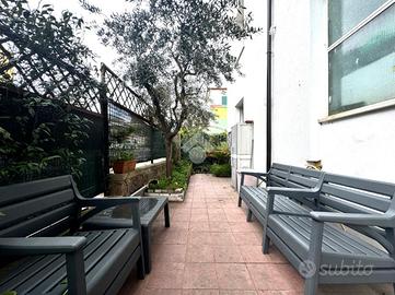 NUORO - In via Piemonte, in zona residenziale tranquilla e servita, splendido piano terra ristrutturato con cortile. Posteggiata l'auto nell'apposito spazio riservato, dotato di stazione di ricarica per veicoli elettrici alimentata da impianto fotovoltaico condominiale, pochi metri, e si raggiunge l'ingresso dello stabile. Varcata la soglia, si viene accolti da un andito centrale, che taglia a metà l'appartamento, e che termina nel comodo ripostiglio. Nell'ala destra si trovano, nell'ordine, la cucina, il bagno finestrato con doccia e la prima camera da letto. Dalla parte opposta, invece, trovano spazio il pranzo-soggiorno, con affaccio su comodo cortile privato, e la seconda camera da letto. L'immobile si presenta recentemente ristrutturato, dotato di riscaldamento autonomo a pompe di calore e viene venduto con arredi presenti. Costi condominiali: 180 euro all'anno.