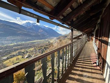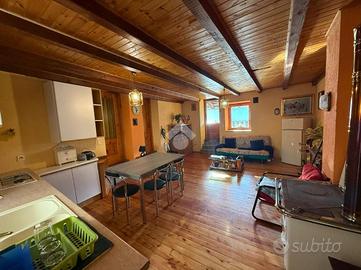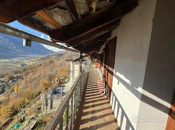 A Nus, Frazione Baravex Dessous, nella primissima collina. L'immobile si sviluppa su unico livello con ingresso indipendente. Il soggiorno è unito all'angolo cottura con l'uscita sul balcone a sud. La zona notte ospita una camera matrimoniale con l'uscita sul balcone, una cameretta con balcone e bagno con finestra. Completa l'unità un'ampia cantina, due aree verdi non collegate direttamente alla casa e a 100 metri è presente un parcheggio pubblico gratuito. Il riscaldamento è autonomo, presenza di canna fumaria con possibilità di installare una stufa a pellet o legna. Spese condominiali assenti.