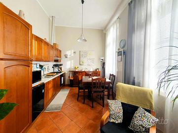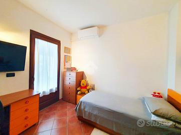 Comodo alla stazione di Favria, in piccola palazzina senza spese condominiali. L'ingresso dell'abitazione è direttamente sulla zona giorno che racchiude il soggiorno e la cucina a vista resi luminosi dall'ampia parete finestrata. Il disimpegno conduce alla zona notte dove trovano posto la camera matrimoniale, la cameretta servite entrambe da porta finestra per l'uscita sul balcone ed il bagno con doccia. Al piano terra un ampio box auto con retrostante area verde esclusiva completa la proprietà. L'appartameto è stato completamente ristrutturato e volendo è dotato di condizionatori e stufa pellet.