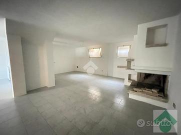 Al piano seminterrato è presente una spaziosa taverna con camino a legna, perfetta come ambiente conviviale, oltre a una cucina e un bagno finestrato con vasca.