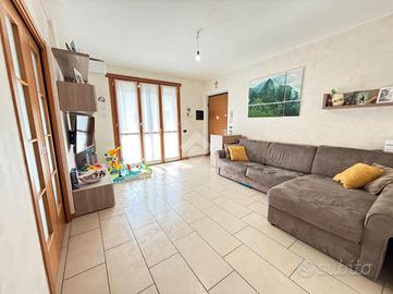 OLGIATE MOLGORA - Nella frazione di San Zeno, in una palazzina di sole otto famiglie costruita nel 2012, proponiamo un appartamento con terrazzo di circa mq 15, esposto a sud, che dona alla casa uno spazio esterno vivibile, ideale per mangiare all'aperto o trascorrere momenti di relax. L'abitazione, situata al piano primo ed ultimo, è composta da ingresso, soggiorno e cucina abitabile, entrambi con affaccio sul terrazzo, disimpegno notte, due camere, bagno finestrato e lavanderia. L'ottima esposizione solare su due lati, con la zona living orientata a sud e la zona notte a nord, consente alla casa di essere luminosa e arieggiata. La presenza dell'isolamento termico a cappotto, dei pannelli fotovoltaici, della ventilazione meccanica e del riscaldamento a pavimento, con la possibilità di regolare la temperatura in ogni ambiente, permette all'immobile di avere un ottimo rendimento energetico, rientrando in classe B. L'appartamento viene fornito accessoriato di zanzariere, aria condizionata nella zona living, predisposizione raffrescamento a pavimento e allarme, il tutto compreso nel prezzo di vendita che include anche l'autorimessa singola, a completamento della soluzione.