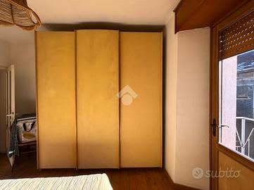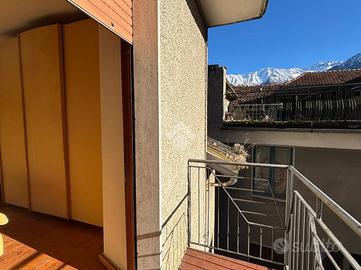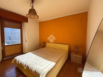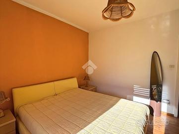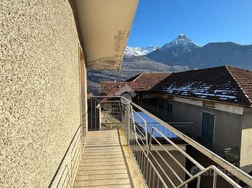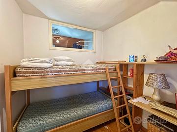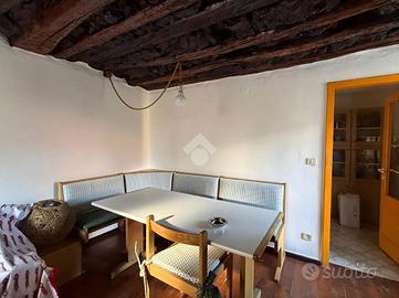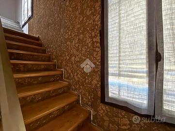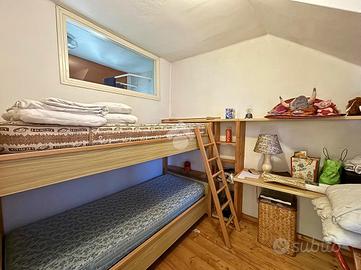 Disposta su due livelli oltre a una mansarda, accoglie al piano terra una zona giorno intima e caratteristica, con soggiorno arricchito da un camino che dona calore all'ambiente, affiancato da una cucina separata. La scala conduce al piano superiore, dove trovano posto una camera matrimoniale con balcone, un bagno finestrato e una seconda camera, entrambi ambienti luminosi e dall'atmosfera tranquilla.