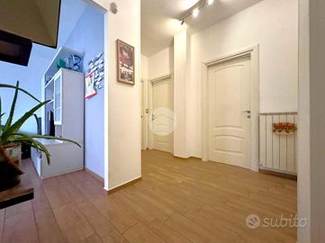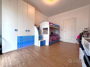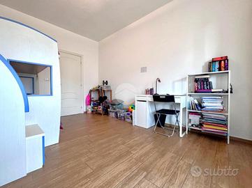 La zona notte comprende due camere da letto ampie e luminose, entrambe facilmente arredabili, un bagno finestrato e un comodo ripostiglio. Gli spazi esterni sono ben distribuiti, con due balconi di generose dimensioni che garantiscono luce naturale e un piacevole affaccio.