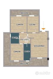 L'immobile è un comodo trilocale composto dall'ingresso nel soggiorno separato dalla cucina abitabile,camera matrimoniale, cameretta, due bagni e una doppia esposizione.