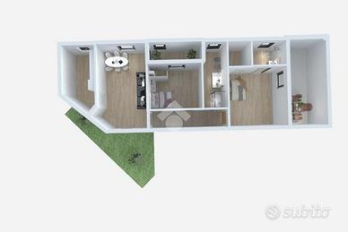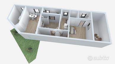 L'abitazione, di circa 83 mq, si sviluppa su un unico livello e presenta ambienti spaziosi, luminosi e ben distribuiti. La zona giorno è ampia e accogliente, con cucina separata e accesso diretto al terrazzo di circa 30 mq, perfetto per vivere l'esterno in totale privacy e comfort. La zona notte comprende due camere da letto e due bagni, entrambi rifiniti con materiali di ottima qualità.