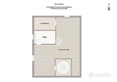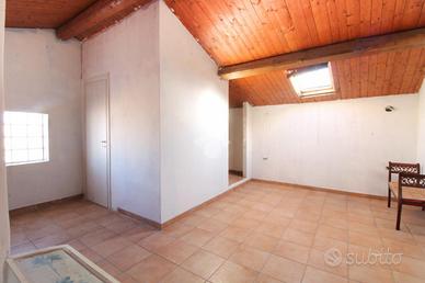 Dal disimpegno del primo piano, una scala a chiocciola conduce all'ultimo livello dell'abitazione, dove troviamo una seconda camera da letto, un secondo bagno finestrato (attualmente da completare, con predisposizione impianti già presente) e un ampio spazio guardaroba o zona studio, che offre ulteriore versatilità all'immobile.