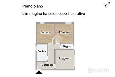 La soluzione ci accoglie con un comodo ingresso che conduce al soggiorno e alla cucina abitabile, ambienti funzionali e ben distribuiti, ideali per la vita quotidiana.