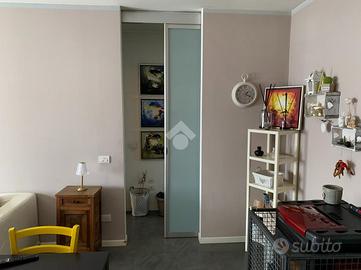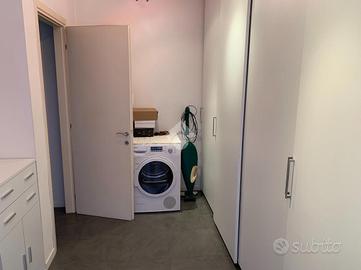 L'appartamento è quasi completamente arredato, con una cucina moderna e funzionale, pronta per essere utilizzata. Il bagno è dotato di sanitari sospesi e di una elegante doccia filo pavimento.