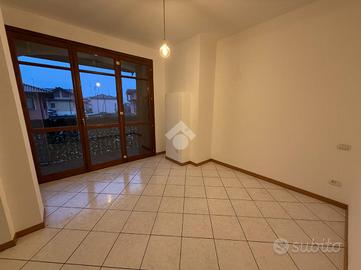 L'ingresso si apre sulla luminosa zona giorno, composta da un accogliente soggiorno con angolo cottura e accesso diretto al terrazzino, ideale per momenti di relax all'aperto. Sullo stesso livello si trova il primo bagno completo di sanitari e box doccia.