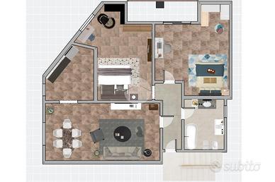 L'appartamento si distingue per gli ambienti funzionali e ben distribuiti: le due camere matrimoniali sono spaziose e confortevoli, e una di esse gode dell'accesso diretto a un balcone, perfetto per rilassarsi all'aria aperta e godere del panorama.