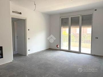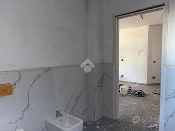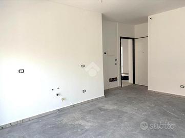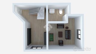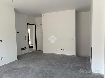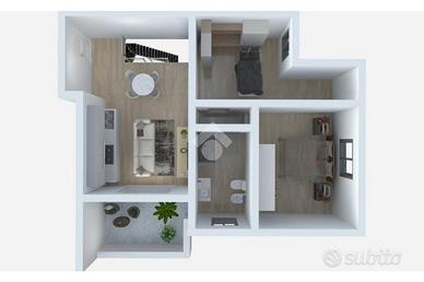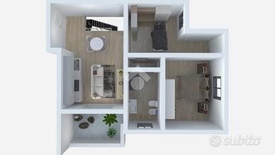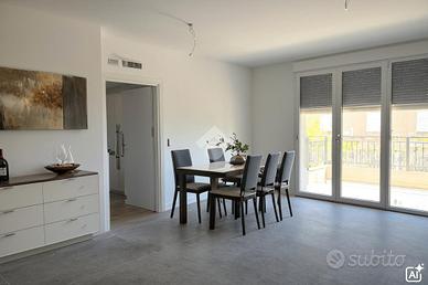 Superata la porta blindata d'ingresso accediamo alla zona giorno con cucina a vista. La portafinestra, che conferisce luminosità alla zona giorno, permette l'accesso all'ampio terrazzo abitabile.