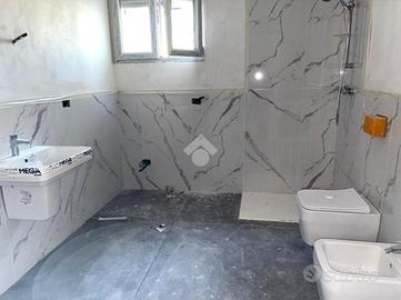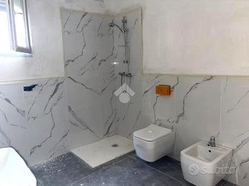 Tramite scala interna raggiungiamo la spaziosa taverna ed un ulteriore bagno finestrato servito da sanitari in ceramica e box doccia, fruibile anche come lavanderia.