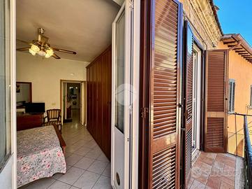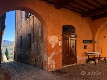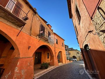 L'immobile, che misura circa 60 mq, è situato al primo piano di un caratteristico palazzo edificato sopra i tipici archi storici che contraddistinguono la via principale del paese.