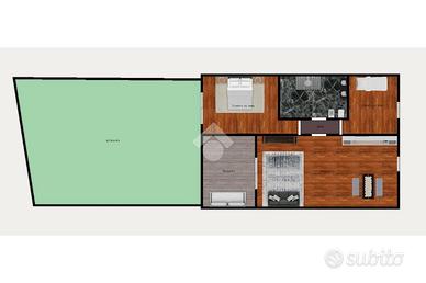 Inside the TOURIST-HOTEL complex, more commonly known as an RTA, called "Le Terrazze Sul Lago," just a few steps from the lake, we offer a fully renovated three-room apartment with a livable porch and private garden. It consists of a living room with kitchenette, a double bedroom, a small bedroom, and a bathroom.