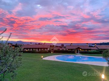 Trilocale con Giardino Privato e Vista Lago nel Prestigioso Residence Gardasole 1 Nel cuore del rinomato residence Gardasole 1, immerso in ampi spazi verdi e dotato di una splendida piscina, proponiamo in vendita trilocale con giardino privato e VISTA LAGO. L'immobile si sviluppa su due livelli: * Al piano terra troviamo un accogliente soggiorno con zona cottura, due camere da letto, un bagno finestrato e un ampio portico con vista panoramica sul lago, che si affaccia direttamente sul giardino privato. * Al piano interrato sono presenti una taverna, un secondo servizio, una comoda cantina e un box.Un'opportunità unica per chi desidera vivere in un ambiente esclusivo e tranquillo, a pochi passi dal lago. Contattaci per maggiori informazioni e per fissare una visita! EN. Three-Room Apartment with Private Garden and Lake View in the Prestigious Gardasole 1 Residence In the heart of the renowned Gardasole 1 residence, surrounded by expansive green areas and featuring a beautiful swimming pool, we offer for sale a three-room apartment with a private garden and LAKE VIEW. The property is arranged over two levels: Ground floor: a welcoming living room with kitchenette, two bedrooms, a windowed bathroom, and a spacious porch with panoramic lake views, opening directly onto the private garden. Basement level: a tavern, a second bathroom, a convenient cellar, and a garage. A unique opportunity for those wishing to live in an exclusive and peaceful setting, just a short walk from the lake. Contact us for more information and to arrange a viewing! DE. Dreizimmerwohnung mit Privatgarten und Seeblick in der prestigeträchtigen Residence Gardasole 1 Im Herzen der renommierten Residence Gardasole 1, eingebettet in weitläufige Grünanlagen und mit einem wunderschönen Swimmingpool, bieten wir eine Dreizimmerwohnung mit Privatgarten und SEEBLICK zum Verkauf an. Die Immobilie erstreckt sich über zwei Ebenen: Erdgeschoss: ein gemütliches Wohnzimmer mit Kochnische, zwei Schl