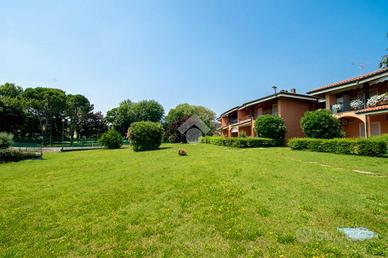 Proponiamo trilocale di testa posto al piano terra, completamente ristrutturato e finemente arredato in residence con piscina, campo da tennis e ampi spazi verdi condominiali. L'abitazione è composta dalla zona giorno che affaccia su un generoso portico con giardino privato e recintato, perfetto per i pranzi e le cene all'aperto; un comodo cucinotto separato, due camere e un bagno finestrato. L'immobile è dotato di riscaldamento autonomo tradizionale e può essere goduto praticamente tutto l'anno. Completano la proprietà una cantina nell'interrato e due posti auto, di cui uno scoperto e l'altro invece coperto da tettoia. EN. We offer a three-room end-unit apartment on the ground floor, fully renovated and tastefully furnished, located in a residence with a swimming pool, tennis court, and large shared green areas. The property consists of a living area overlooking a spacious covered porch with a private, fenced garden, perfect for outdoor lunches and dinners; a practical separate kitchenette, two bedrooms, and a bathroom with window. The apartment features independent traditional heating and can be enjoyed practically all year round. The property also includes a basement storage room and two parking spaces, one uncovered and the other covered by a canopy. DE. Wir bieten eine Dreizimmer-Endwohnung im Erdgeschoss an, vollständig renoviert und geschmackvoll möbliert, in einer Wohnanlage mit Swimmingpool, Tennisplatz und großzügigen gemeinschaftlichen Grünflächen. Die Immobilie besteht aus einem Wohnbereich mit Zugang zu einer großzügigen überdachten Veranda mit privatem, eingezäuntem Garten, ideal für Mittag- und Abendessen im Freien; einer separaten, praktischen Kochnische, zwei Schlafzimmern und einem Tageslichtbad. Die Wohnung verfügt über eine autonome, traditionelle Heizung und kann praktisch das ganze Jahr über genutzt werden. Zur Immobilie gehören außerdem ein Kellerraum im Untergeschoss sowie zwei Stellplätze, davon einer im Freien und der andere überdach