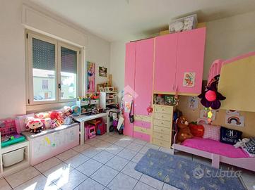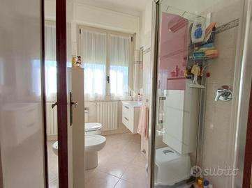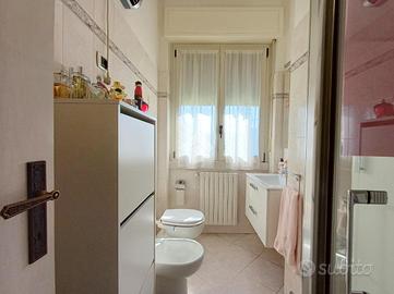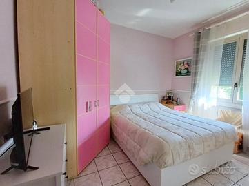 La zona notte comprende due camere da letto di generosa metratura e un bagno finestrato, ben rifinito.