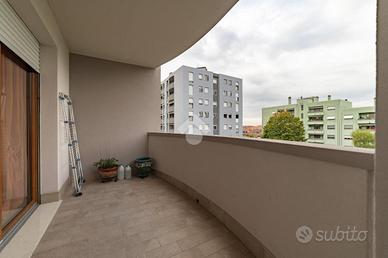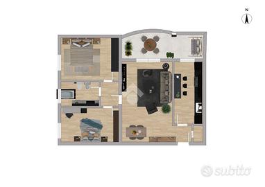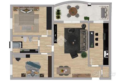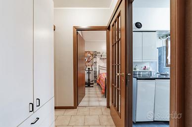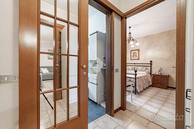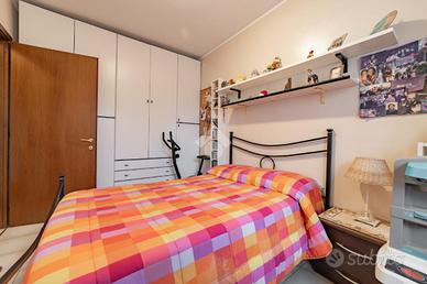 Posta al secondo piano con doppia esposizione (sud - ovest), questa soluzione si presenta con ingresso sul disimpegno che permette l'accesso ad un comodo ripostiglio, alla cucina abitabile ad al soggiorno; questi ultimi due ambienti sono entrambi dotati di porte finestre che conducono all'ampia balconata, profonda, completamente e molto ben sfruttabile. La zona notte, completamente esposta verso sud, è invece composta da cameretta, camera matrimoniale e bagno finestrato con vasca che funge anche da doccia.