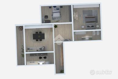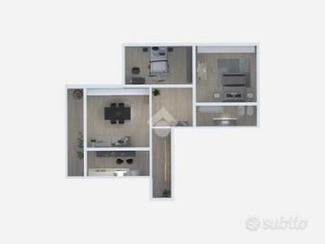L'appartamento è composto da un luminoso soggiorno, una cucina funzionale ed abitabile, due camere da letto e un bagno finestrato con vasca.